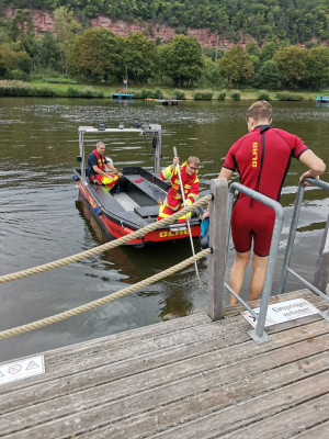 Nach der Modulausbildung in den eigenen Ortsgruppen starteten wir dieses Jahr im Mai zum ersten Mal mit der Basisausbildung Strömungsrettung in den Lehrgang. An einer geeigneten Stelle am Neckar konnten die Teilnehmer unter anderem spezielle Rettungstechniken, wie den Umgang mit einem Wurfsack erlernen. Die Lerneinheit stellt sicher, dass alle Einsatzkräfte mit der Persönlichen Schutzausrüstung für Strömungsretter umgehen können und wissen, wie diese im Einsatz korrekt und sicher zur Patientenrettung zu verwenden ist.