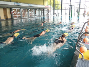 Im praktischen Teil im Hallenbad erarbeiteten die Teilnehmenden in Gruppen typische Fehlerbilder beim Brust-, Rücken- und Kraulschwimmen – und diskutierten, wie diese effizient korrigiert werden können. Einige Übungsansätze wurden direkt auf ihre Praktikabilität im Wasser geprüft.